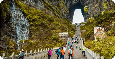 Después del desayuno, partiremos rumbo a Zhangjiajie, puerta de entrada a algunos de los paisajes naturales más impresionantes de China.