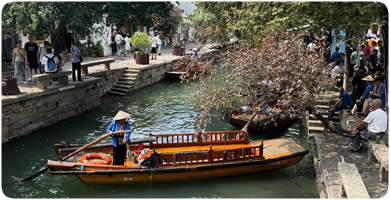 Desde Suzhou viajamos al pueblo acuático de Tongli, la “Venecia del Oriente”, visitamos la Puerta Pan y el Jardín del Maestro de la Red; navegamos por sus canales y continuamos hacia Shanghái.
